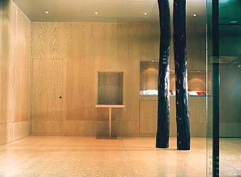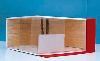 WITH NOTHING We often talk of the way architecture is, how to make it, how to think it. About whether architecture is made, is thought, in plan and section, in form and volume. With history and new things, natural and artificial, solid and airy, abstract and concrete, magic and truth... How difficult it is to make. We talk of how to understand it, how to explain it. With ideas or artefacts, with words or shapes, with what is visible and what is felt. With what is known (certain), with what is sensed (also)... How difficult it is to explain. The suggestion-laden concision of the CTAA stand gives reliable clues. It answers so many doubts: architecture is thought, is explained, is made, like this, with all this... With the enclosed air and with the absence that is incorporated into the interior by transparency. With the discreet, soft abstractness of its wood-lined interior and its two inhabitants. With what architecture gives and, conspiratorially, hides in its folds. With the space that defines, that generates, a patch of colour at your feet: inside, outside? With what you know, what you suppose, what you do not know. With almost nothing to it. Javier García-Solera |