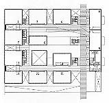 Once the basic system had been decided, two storeys with a series of three transverse rooms were placed above it to contain the brief’s requirement of six departments with 150 offices. These rooms have a spatial concept (closed) that is the contrary of the former and we believe that the contrast between their layout and the initial open framework of the lecture halls strongly emphasises the spatial qualities of the whole. The lecture halls open onto the internal empty spaces for adequate isolation, while the remaining spaces can be occupied freely both by the student users and the rest of the university community. The building has no main entrance doors. This whole zone is intended to interact fluidly with the rest of the university area. This is helped considerably by the plan having been conceived as an open space where the siting of the various pavilions does not interfere with the end perception of the result as regards the spatial continuity of the whole. The obstacles the upper volumes interpose over the lower ones are intended to provide sunlight control. As the sun passes overhead they project a variable range of shadows on the planes that define the empty spaces, which helps to regulate and soften the entry of natural light. We believe that the great freedom of use, the variety of routes and cross-views, the transparency of the whole (in the sense of spatial permeability) and the creation of sheltered or cool corners, protected by the pavilions themselves and the canopied walkways, provide the appropriate conditions to create a place that will be conducive to movement, contact and meeting. |
