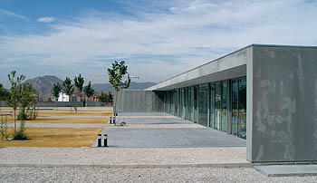 This school came about because the acute deterioration of the existing Virgen del Remedio infant school, as a result of the conversion of HAC concrete, made it necessary to vacate the building until a new school could be built. Located on a site on the edge of the village, on land that still bears traces of its previous use for unirrigated crops, this municipal school was designed to accommodate 6 classrooms for children up to 3 years old, kitchens and dining rooms, multi-purpose spaces, play areas and rest areas. The plot faces onto a road, with a certain gradient from there to its opposite edge. An open-minded consideration of the brief, together with the importance of exterior spaces in a building such as this, led to conceiving the whole as an enclosure for play and recreation. This was aided by the decision to plant trees in every available space, fostering the idea of 'being in a park'. To separate the park from the road, the slope was turned to advantage, locating the ground level at a greater height so the building rests lightly on the ground and projects over the road entrance space, with which it is connected by a gently-sloping inclined plane or ramp. This plane contains the car park and main entrance. The small courtyards alongside each classroom bring light into the main corridor, giving it its rhythm, and provide unexpected views of the classrooms while taking their privacy into account. The finishes reinforce this approach, using lightweight, inexpensive materials (wood cement particle board) and attempting to optimise the resources. The colours used in the interior, yellow, orange and white, in addition to black, help to introduce a certain dynamism and identify each classroom through the colour of its toilet, which is the same as the colour of the walls around its entrance. The basic aims were that the building and its siting should add interest to its semi-urban surroundings and, fundamentally, to provide the school with attractive spaces suitable for the children's age. In view of the above, the intention was to mark off a space where the building would not be something that bore no relation to the exterior. Both spaces, built and empty, should flow together to shape an attractive setting that would favour the pupils' relations with each other and their activities, essentially play and enjoyment. For this reason, the idea was to see the project as creating a 'park' and as a result, to achieve a harmonious work that would provide an adequate response to its site and create a place where the many, varied forms of the children's potential could develop.
