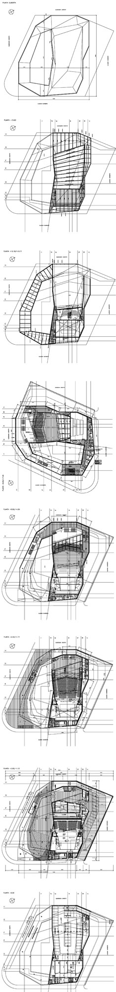 de espacio público. En efecto, el volumen de construcción al que obliga el programa de un gran auditorio es enorme. Es uno de los programas con un mayor volumen a ser insertado en la ciudad. Y es, esencialmente, un volumen horizontal. Y generalmente, a no ser que se caiga en una situación caprichosa, lo óptimo es que sea ciego para evitar todo tipo de contaminación acústica. Estas tres condiciones: su enorme volumen de construcción, su condición “muda” y su generalmente condición horizontal, hacen de este un programa que se inserta con dificultad en la ciudad. ... A menos que el mismo no genere el propio espacio urbano al que pretende pertenecer... Es como crear un círculo de arte y después entrar en él... Procedimos de ese modo para poder pensar y construir el “Auditorio”. Un auditorio es un programa principal (sala + foyer) y una serie de programas complementarios generalmente de un orden de magnitud mucho menor. Los combinamos de modo que los programas menores rodearan al programa principal, estuvieran dispuestos en ese “brazo” y por otro lado conectaran los dos extremos más alejados de la sala y foyer, como una pescadilla enroscada. se brazo genera un espacio público, un espacio descubierto, una gran plaza y permite que el acceso al auditorio sea un encuentro a través de ese espacio. Es un espacio que propone la celebración de la actividad musical o teatral al aire libre y permite tener la sensación de acceder al ámbito espacial y público del Auditorio antes incluso de su acceso propiamente dicho. Es un lugar que genera una sombra, que proyecta un círculo de sombra tanto en planta como en sección. En planta porque esa sombra construye un ámbito previo que a la vez separa y une al proyecto con la ciudad. En alzado, porque esa sombra se interpone como una capa construida que corta el volumen principal y le da una escala menor más urbana. Se crea así una profundidad que en principio el auditorio, plano y muro, lógicamente no posee. La geometría que propusimos fue una geometría que nos recordaba la de las montañas, las de las construcciones que no distinguen los planos de fachadas y de cubiertas sino que de un modo único establecen soluciones de continuidad entre los planos horizontales o inclinados, de la cubierta y los planos verticales o inclinados de las fachadas. Una única materia recorre así el edificio construyendo paredes y techos. Una pieza de plástico sostenible en su construcción desarrollo y eliminación. De ese modo el proyecto reconstruye la imagen de la montaña que vimos desde el sitio en el que ahora se sitúa el Auditorio. ![]() |