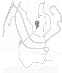 The plot was terraced to form three levels that organise the brief: the car parking and entrances are on the first level, the blocks of apartments on the second and the third level, the lowest and overlooked by the other two, has the communal garden with a solarium and a swimming pool. The complex is a series of three prism-shaped blocks of different sizes that fit into the slope almost as if they had been cut out of the rock, at the same time creating back courtyards and diverse gap spaces that face in different directions and have different sun exposures and uses. |
