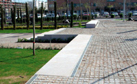 These were the stated objectives, so the central axis would not only be the articulating element but would also become an attractive meeting place for the students, with places for walking, meeting up and taking a break, but as in any other part of the University, without forgetting its rôle in the acquisition of knowledge. It is based on a system of a certain complexity, laid out along a directional course and composed of alternating, differentiated beds, together with a system of planes and volumes that combines this directionality of lines with the search for a final perspective where large-scale masses of vegetation will converge and be particularly prominent in due time. The perspective and depth of the axis is structured by using botanical species that rise from the beginning to the end in a steady crescendo, aided by the slope, finishing with the tallest, most voluminous species, placed in a balanced way on either side but without lapsing into formal symmetry. One argument, learning through the senses, guided the decisions and gave its name to the project. It shaped the garden as a sequence that changes with each section, where the species employed follow a logic which is recognizable in the botanical world and is not unconnected with sensory enjoyment. Sight, hearing, smell, taste and touch are represented by schemes which are independent but botanically and formally connected with the adjoining sections. The presence of water is a constant that appears in different forms, depending on whether the intention is to hear, see, touch, smell or taste, and disappears when passing through certain places. Sound effects, different textures and a wide range of flavours and aromas appear successively over the entire surface of the boulevard, culminating in the section opposite the Agora with the plants that have the most striking and contrasting colours. At the end of the axis, before entering the central Agora of the campus, there is a built meeting point, an identifiable place for waiting for friends, arranging to meet, waiting for the bus, etc. This is a big steel and glass and wood canopy that can both be seen as the end of the central axis and be pierced visually, giving the central axis of the University an added depth and complexity. |