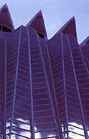 La posición del edificio del museo está al final del conjunto de la ciudad de las artes y de las ciencias. A la manera de los grandes pabellones de las grandes exposiciones históricas, se genera un edificio longitudinal a partir del desarrollo modular de su sección transversal en toda la longitud de la parcela asignada.. Los testeros, asumen su carácter de remate final del edificio de modo simétrico, con una imagen tensional, de sujeción de los distintos módulos repetidos a la manera de contrafuertes laterales. Así el edificio se configura como una gran cubierta soportada por una fachada vidriada y transparente al norte y por una fachada sur convenientemente opaca, ambas adaptadas a las particulares condiciones de soleamiento derivadas de la orientación en Valencia. La estructura interna del edificio, que exteriormente se constituye como una gran cubierta, se dispone como un espectacular juego de plataformas suspendidas de un sistema estructural configurado por cinco grandes árboles de hormigón, cuyas ramificaciones sujetan la cubrición del edificio. |