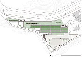 | El proyecto del instituto parte de estas premisas. El solar tiene una forma similar a la de un triángulo isósceles, donde uno de los lados largos es el paseo de circunvalación de la montaña, y con aproximadamente 18 metros de desnivel entre sus lados. El programa incorpora salas de diversas dimensiones: aulas, laboratorios, seminarios, comedor, recepción, oficinas, gimnasio... | The project for the high school starts from these premises. The plot is shaped like an isosceles triangle, where one of the long sides is the promenade going around the mountain, and has approximately 18 metres of gradient between the sides. The brief includes different-sized rooms: classrooms, laboratories, seminar rooms, dining room, reception, offices, gymnasium, etc. | |